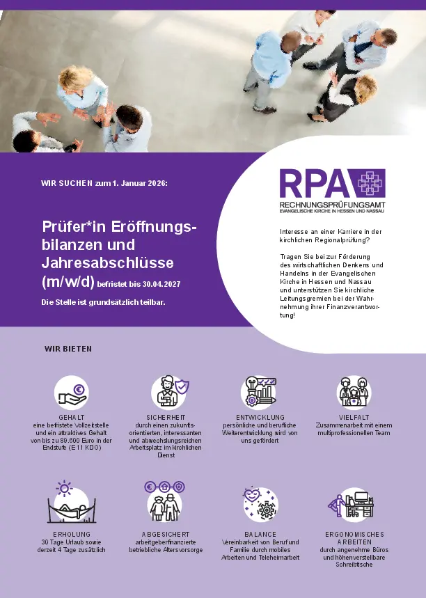 Zum 1. Januar 2026 ist im Rechnungsprüfungsamt der EKHN eine unbefristete 1,0-Stelle als: